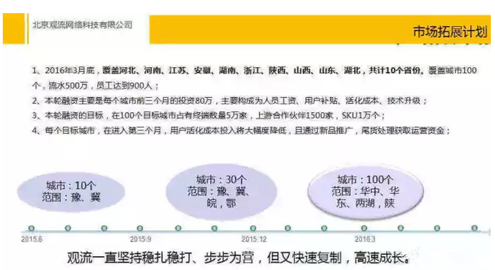 “目前是旁边快速扩张的重要节点,到2016年一季度末,旁边将覆盖河北、河南、江苏、安徽等共计10个华中、华东省份,覆盖城市100个,100个目标城市占有终端数量5万家,上游合作企业1500家,注册用户数将达到800万以上”,北京观流网络科技有限公司CEO许英杰对记者坦言。