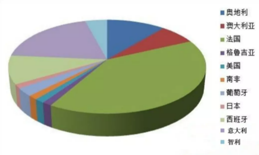 不合格产品主要来自奥地利、澳大利亚、法国、格鲁吉亚、美国、南非、葡萄牙、日本、西班牙、意大利、智利等11个国家或地区,其中来自法国的最多,有29批次,其次是意大利有14批次。