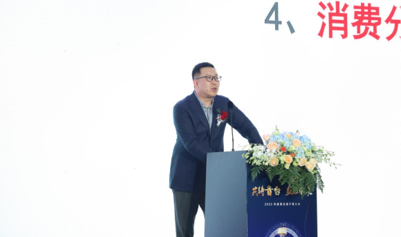 贵台千商大会现场,中国酒业流通协会秘书长秦书尧聚焦酱酒行业发展趋势详细解读了酱酒品牌发展格局。