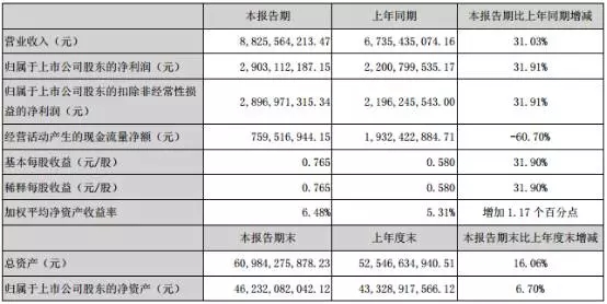 4月28号下午,宜宾五粮液股份有限公司发布2016年一季报称,报告期内公司实现营业收入88.25亿元,同比增长31.03%,归属于上市公司股东净利润为29.03亿元,同比增长31.91%。