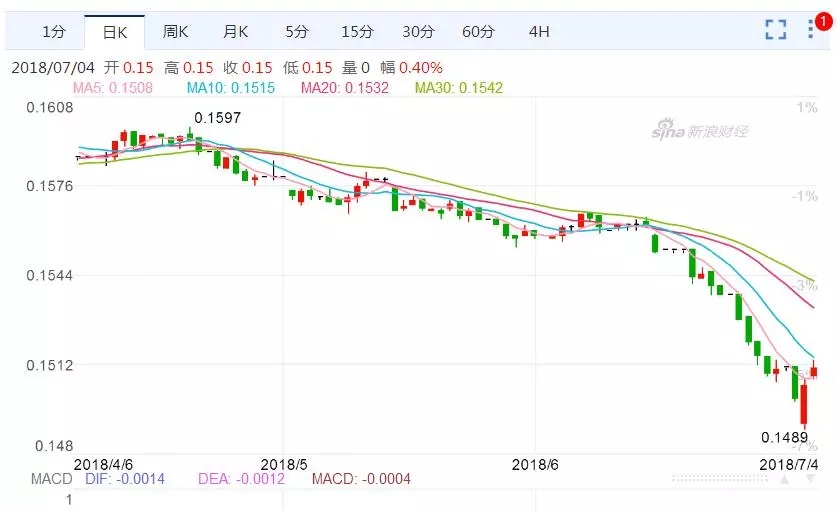 据相关媒体报道,截至2018年7月3日,仅仅75天时间,人民币兑美元汇率就从6.26贬值到6.72,累计贬值幅度超过7%,不但将去年四季度的升值部分全数抹去,并创下2017年8月8日以来的新低。7月4日,人民币有所提振,对美元汇率小升至6.62。