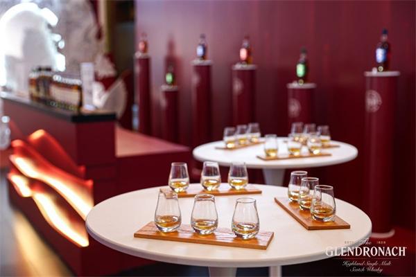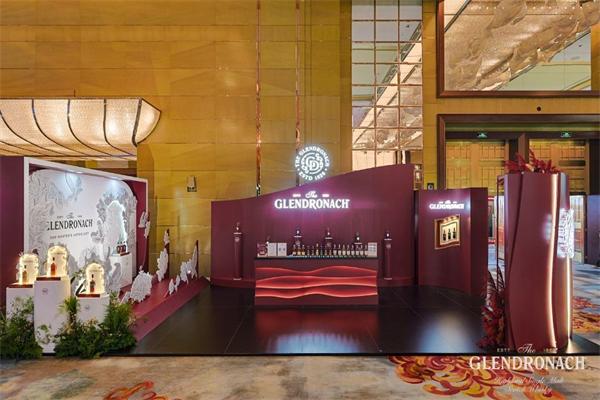 循着威士忌醇香芬芳,仿若步入“雪莉秘境”。环形展区织就风味艺术回廊,勃艮第红游弋着优雅锻光,如一条神秘丝带,不自觉牵引着来宾目光。嫣红花卉沿廊倾泻,雪莉桶的醇厚香气随之弥漫,氤氲出深邃华丽的格兰多纳叙事。