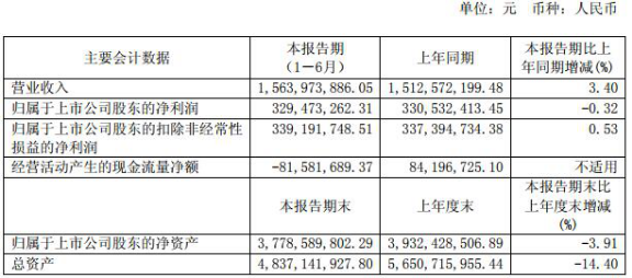 8月18日,迎驾贡酒公布半年报,显示,今年上半年迎驾贡酒实现营业收入15.64亿元,同比增3.4%;净利润3.29亿,同比减少0.32%。