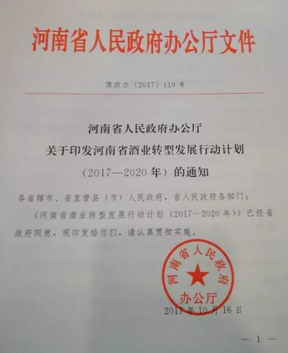 近日,酒业家记者独家获悉河南省人民政府办公厅印发的文件《河南省白酒业转型发展行动计划(2017-2020年)的通知》(以下简称“通知”)。该“通知”明确了豫酒未来发展的目标规划,并指出了豫酒振兴的十大任务。那么,豫酒将如何转型?其中释放了哪些利好信号?酒业家记者对文件作了梳理: