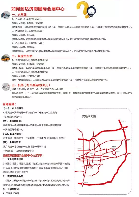 无论是您是飞机、高铁、长途汽车,还是自驾、公交,山东国际糖酒会组委会制作的参观指南均让您轻松到达会场。如果是组团参展的专业观众,组委会还在山东17地市,石家庄、安阳、商丘、徐州及宿迁等地免费接送。提前预约登记的专业观众,还会领取到组委会提前准备的采购证、参观指南、免费午餐及精美礼品。