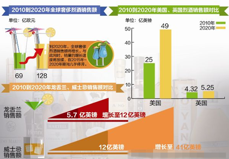 市场研究机构欧睿国际(Euromonitor International)发布的报告称,2010年~2020年,全球奢侈烈酒销售额将增长近一倍。
