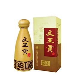 特制正一品文王贡酒由安徽文王酿酒股份有限公司运营,属白酒类系列产品,其品质优良,酿造工艺独特,口味醇正。安徽文王酿酒股份有限公司位于号称"天下粮仓"之一的淮北平原,古时周文王第十子聃季载的封地沈子国,现安徽省阜阳市临泉县。公司的前身创建于1958年,现已发展成为拥有资产上亿元,占地400多亩,年创利税6600多万元的省白酒重点骨干企业。