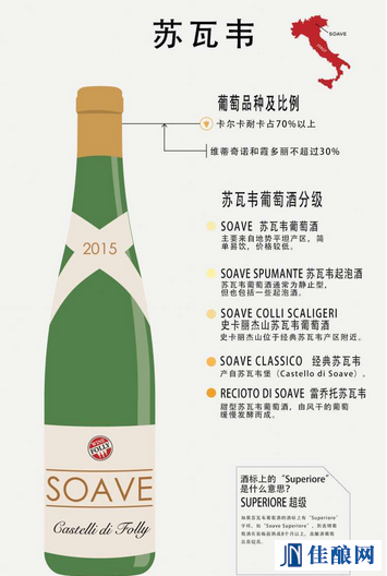 苏瓦韦(Soave)是意大利北部的一个中世纪村庄,出产由卡尔卡耐卡(Garganega)酿制的苏瓦韦白葡萄酒。苏瓦韦白葡萄酒以哈密瓜、柑橘风味以及较佳的陈年潜力知名。