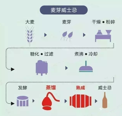 2.在发酵得到液体“Wash”或“Beer”之后,还要经过蒸馏,以提高酒精度数。