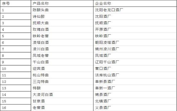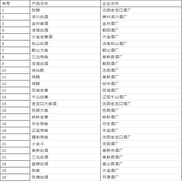 二、1973年辽宁省名优白酒名单(排名不分先后)