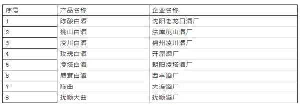 六、1990年辽宁省名优白酒名单(排名不分先后)