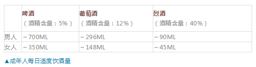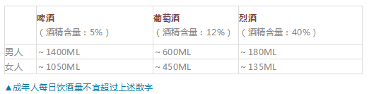 那么,喝多少酒才是“过量”呢?根据美国卫生及公共服务部和美国农业部发布的“饮食指南”(dietary guidelines),适度饮酒的量为: