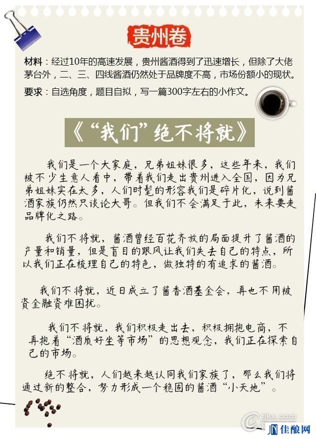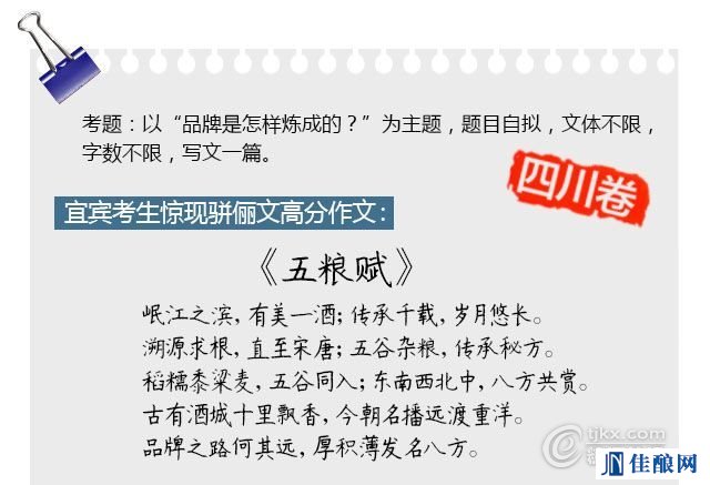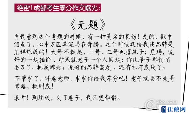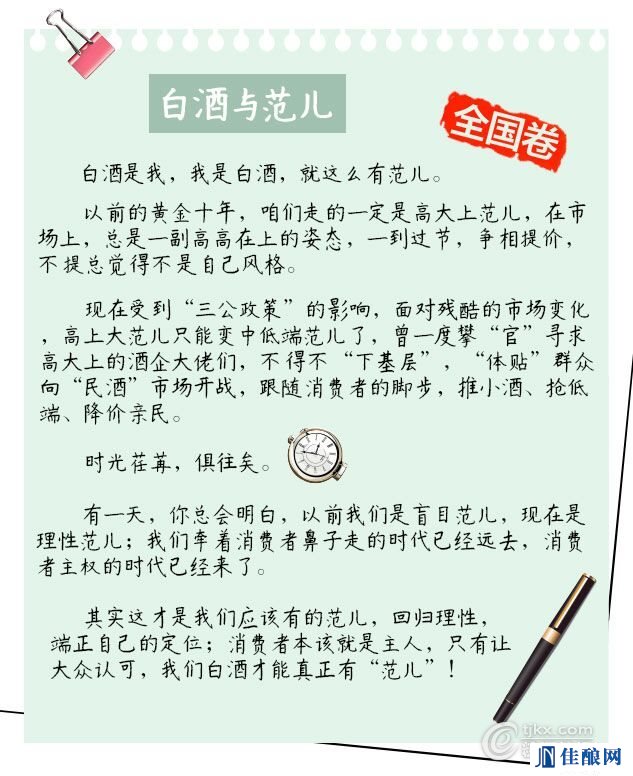 今年各个地区的高考作文题目一出,瞬间一批神坑作文又出世了,例如:《范儿与晨儿》、《女儿举报老爸》等文章,咱们白酒行业居然也跟风涌现出了一批高考作文“神文案”……
