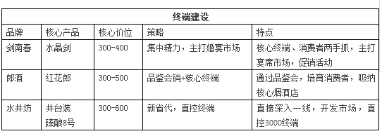 不难发现,剑南春、郎酒、水井坊这样的企业都在直接面对消费者,都在尽可能的掌控更多核心终端,也就是核心烟酒店。同时,它们主打的产品价位在300—600,而这一价位是地方酒企的最想做的,同时也是利润最为丰厚的价格带。