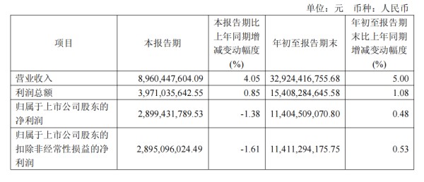 10月30日,山西汾酒2025年前三季度业绩报告正式发布。beplay正规 显示,汾酒前三季度实现营业收入329.24亿元,同比增长5.00%,归属于上市公司股东的净利润为114.05亿元,同比增长0.48%;第三季度实现营业收入89.60亿元,同比增长4.05%。