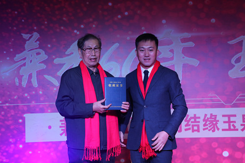 玉泉酒业董事长杨立友代表企业向高老献上600斤限量版大师封坛酒,寓意高老与玉泉的缘分天长地久,也祝愿白酒行业的这位老寿星福寿绵长。黑龙江省画院教育学院院长青年画家闫景阳向高老献上画作一幅,祝福老人家耄耋常乐,松柏长青。
