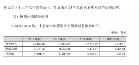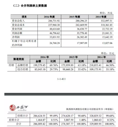 根据招股说明书所述,2016年西凤营收28.67亿,净利润3.5亿。招股书同时披露了西风2015年、2014年经营beplay正规 :2015年营收28.03亿,净利润2.63亿;2014年营收33.21亿,净利润1.56亿。