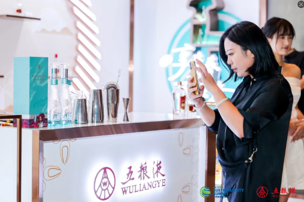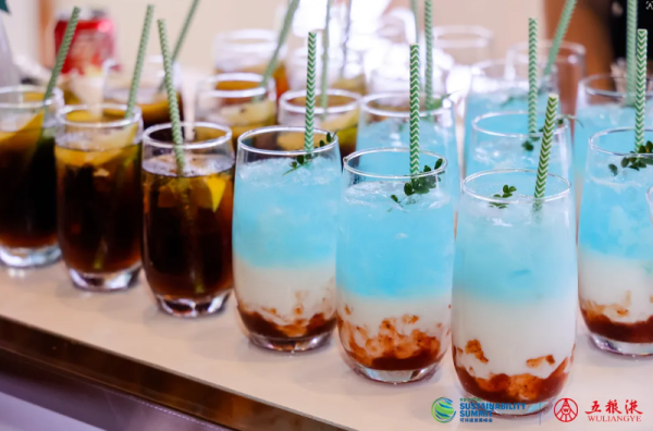展台右侧的低度调酒吧台也颇受参展嘉宾关注。调酒师以29°五粮液·一见倾心为基酒,现场调制“我的阿勒泰”“怦然心动”“和美喜乐”“乌龙肉桂酿”四款特色鸡尾酒,其中“乌龙肉桂酿”巧妙融入福建武夷岩茶元素,既呼应峰会举办地文化,又传递“低度、健康”的饮酒理念。“五粮液用创意可持续打造‘地域风味’,这种体验让‘绿色消费’不再抽象。”一位参展的跨国企业代表如此评价。