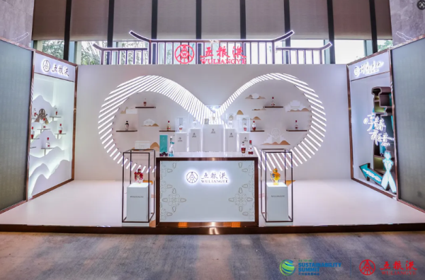 峰会场外,五粮液以象征循环永续的莫比乌斯环为设计灵感,以“和美永续”为主题,创新打造融合艺术表达与可持续发展理念的ESG创意展台。