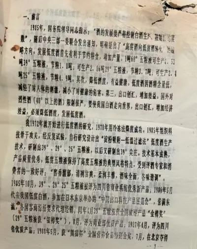 图2国家轻工部的鉴定档案中对39°五粮液的评语