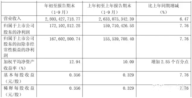 重庆啤酒发布2015年三季报。公告显示,2015年1~9月,公司实现营收28.03亿元,同比增6.47%;实现净利1.72亿元,同比增7.76%。