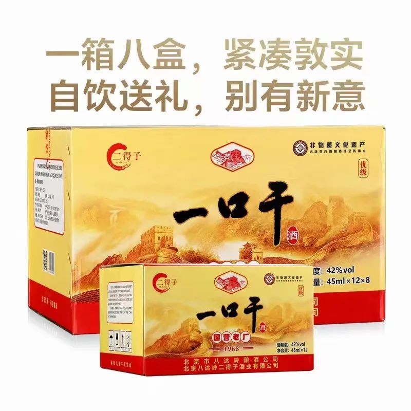 二得子一口干是由北京市八达岭酿酒公司酿造,该公司前身为1968年延庆县政府兴建的延庆县酒厂,已有几十年的酿酒历史,这为二得子一口干的酿造提供了深厚的酿酒工艺与产能基础。