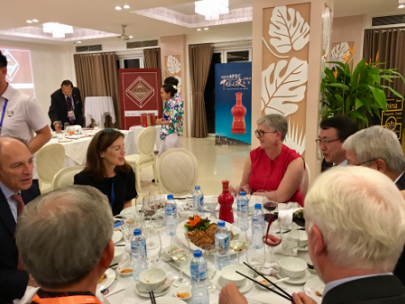 作为“APEC中国之夜”战略合作伙伴,四川剑南春股份有限公司副总经理赵君代表工商界为晚宴致祝酒词。她表示:千年前,盛世唐朝文化的巨大影响力让宫廷御酒剑南春流芳世界。今日剑南春非常荣幸与“APEC中国之夜”携手,创新发展,希望将中国白酒文化再一次传播世界。