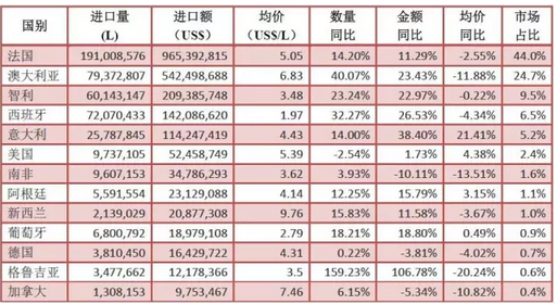 全年beplay正规 显示,进口瓶装酒市场三大巨头仍为法国、澳大利亚、智利,三者市场份额占比合计为78.2%,法国一骑绝尘且稳中有进,澳大利亚地位稍逊但增势迅猛、智利居于三魁之末但奋起直追之势不容小觑;另一方面,其他瓶装酒进口来源地百舸争流,涨跌互现,这是国内消费需求多样化、个性化的集中表现,也反映了瓶装酒市场格局的细分化趋势。