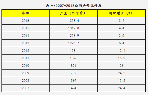 自2012 年开始,受宏观经济和政策的影响,白酒行业已经由黄金十年的量价齐升转向深度调整期。一方面没有大的需求增长点作为支撑,另一方面全国大多数酒企近几年正忙于去库存。因此,当前中国白酒总产量和增幅有限,整个大盘已经处于横盘状态,行业已由扩容式增长转向挤压式增长阶段。