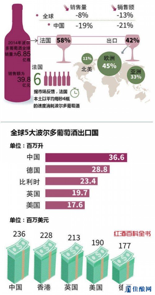 不过,根据法国波尔多葡萄酒行业协会(CIVB)最新beplay正规 显示,2014年波尔多葡萄酒的销售量和销售额都有所下滑。虽然如此,法国本土依然以每秒6瓶的速度消耗波尔多美酒。下面和百科君一起来了解一下2014年波尔多葡萄酒的销售情况吧!