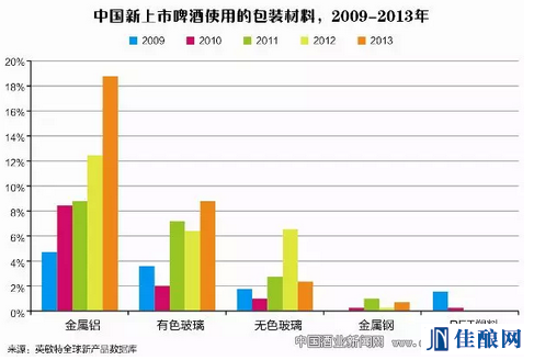 啤酒花日益成为啤酒包装上强调的热门成分,出于降低成本的考虑,铝制包装自2011年以来大幅上升,而瓶装和罐装啤酒的包装容量正在减小。