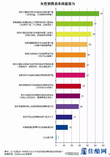 市场需要迎合女性消费者这一变化的需求。一份调研得出,类似于其他酒精饮料市场,半数以上(54%)的女性饮酒者有兴趣尝试专为女性设计的啤酒,这反映出打造全新啤酒子类别的可能性。不过,面临的问题是,虽然一些知名品牌也提供本应更受女性青睐的调味啤酒,但很少有品牌传递明确的营销信息,推广其专为女性设计的产品。