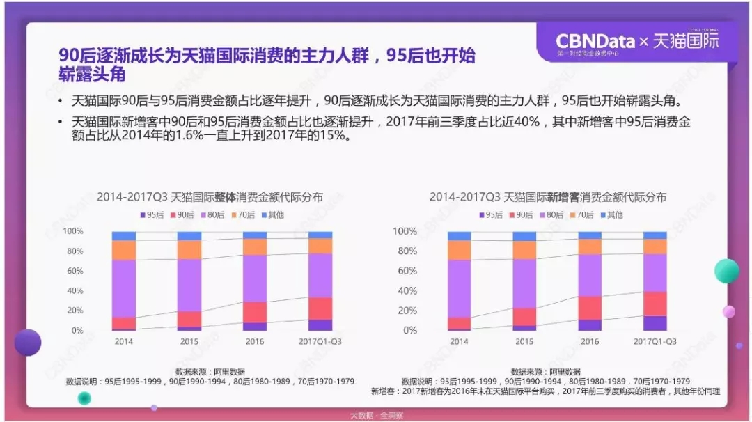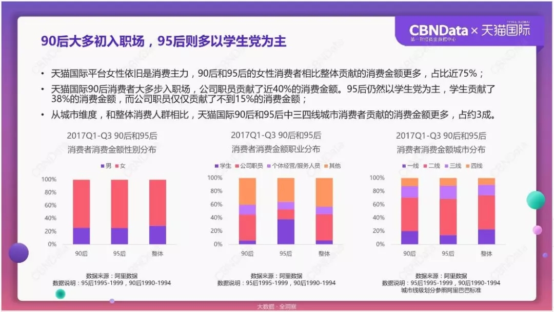 按照上图的beplay正规 ,90后约占天猫国际消费金额的30%左右,按此比例,90后贡献了约1200亿的消费金额。