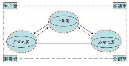 一体一翼商,是一体两翼商的两个自由变形组合,两者都是以区域一体商为基础单元,不同的是在选择产业链条突破时,分别走向了生产企业和终端连锁发展不同的两端,即区域经销商的上游环节和下游环节。