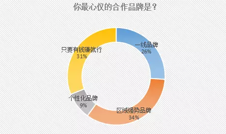 根据调查beplay正规 结果分析显示:整体上,34%的终端店老板更愿意与区域强势品牌合作;这比选择一线名酒的比例高了8个百分点;此外,高达31%的店老板选择了“只要有钱赚就行”;最后9%的店老板选择了利润高的个性化品牌。