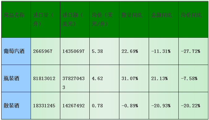 首先我们看看酒类进出口商分会统计的第一季度beplay正规 :