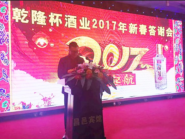 2月6日,乾隆杯酒业在驻地潍坊昌邑宾馆举行了2017年新春答谢会。新组建的领导层及品鉴级乾隆杯等多款战略新品亮相,此次规模较大的答谢会,参与者涵盖昌邑市领导以及具有较大影响力的经销商等。